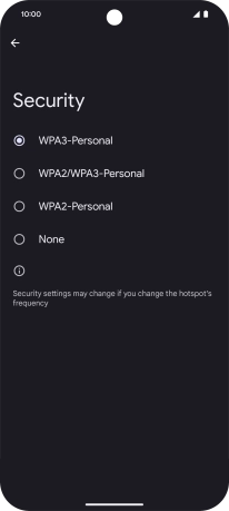 Press WPA3-Personal to password protect your Wi-Fi hotspot.
