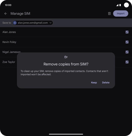 If you want to delete the copied contacts from your SIM, press Delete.