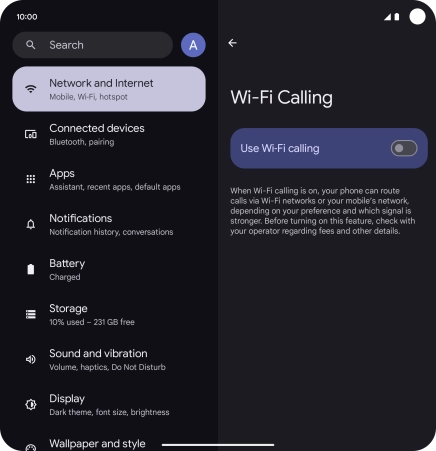 Press the indicator next to "Use Wi-Fi calling" to turn the function on or off.