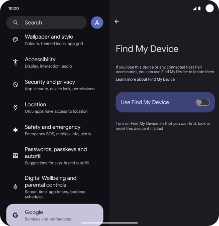 2. Turn on Find My Device