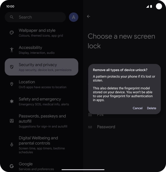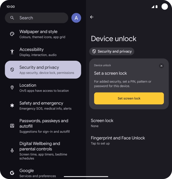 Press Screen lock and key in the additional phone lock code you created earlier.