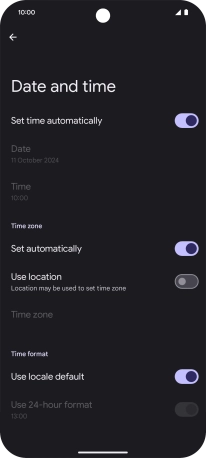 Press the indicator next to "Set time automatically" to turn on the function.