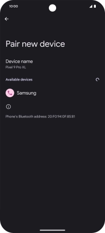 Press the required Bluetooth device and follow the instructions on the screen to pair the device with your phone.