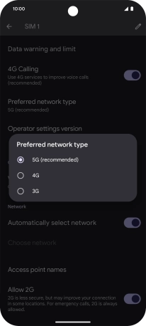 Press Preferred network type.