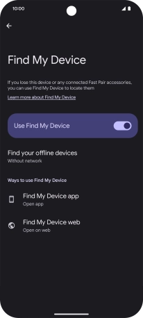 Press the indicator next to "Use Find My Device" to turn on the function.