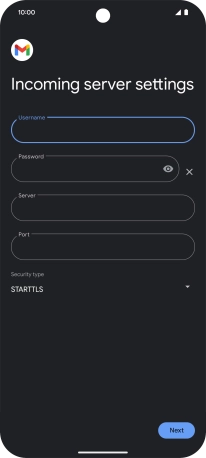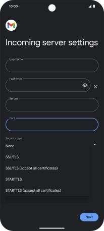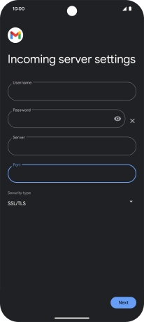 Press the field below "Server" and key in the name of your email provider's incoming server.