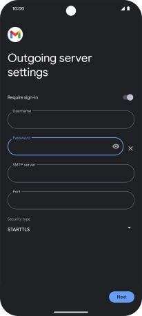 Press the field below "Password" and key in the password for your email provider's outgoing server.