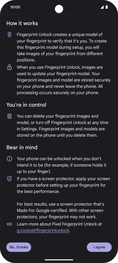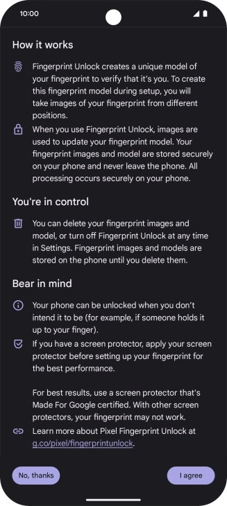 Follow the instructions on the screen to create the phone lock code using your fingerprint.