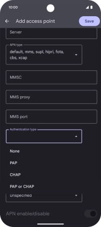 4. Select APN type