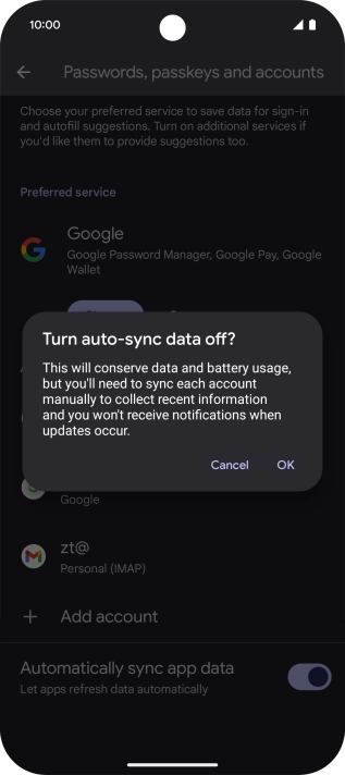 Press the indicator next to "Automatically sync app data" to turn the function on or off.