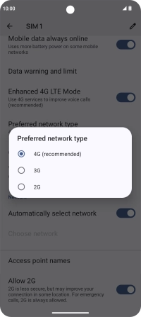 Press Preferred network type.