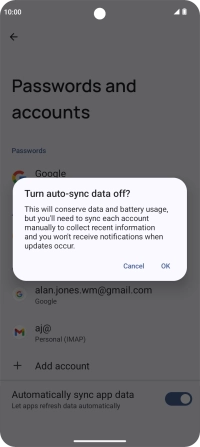 Press the indicator next to "Automatically sync app data" to turn the function on or off.