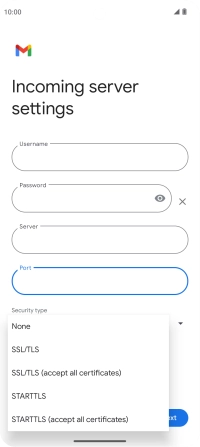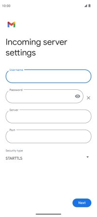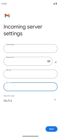 Press the field below "Server" and key in the name of your email provider's incoming server.