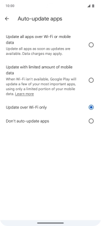If you turn on limited update of apps via mobile network, your most used apps are automatically updated via the mobile network when no Wi-Fi networks are within range.
