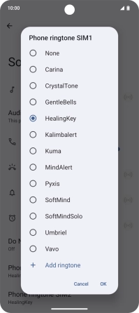 To use a different ring tone than the default ones, press Add ringtone and follow the instructions on the screen to select the required ring tone.