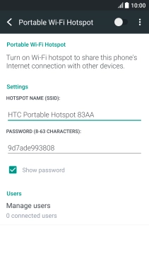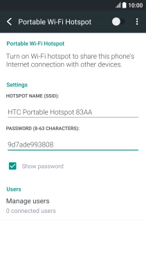 Press the indicator next to "Portable Wi-Fi Hotspot" to turn on the function.