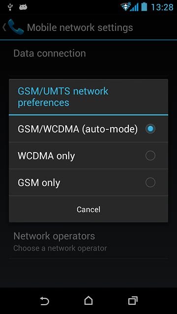Press GSM/WCDMA (auto-mode), WCDMA only or GSM only.