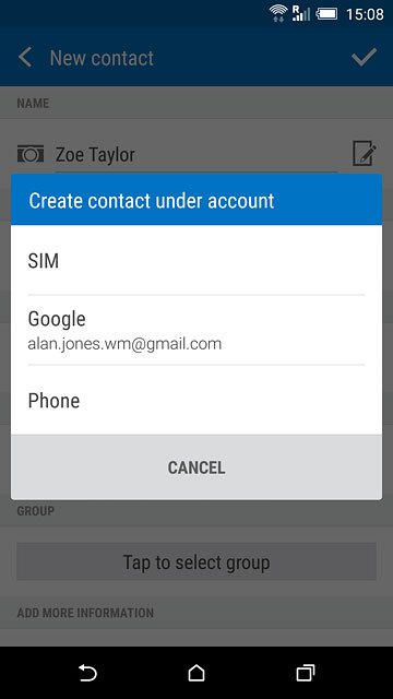 If you select an account, the contact is attached to this account but is also displayed on your phone.
