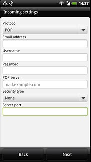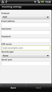 Press the field below POP server and key in the address of the incoming server.