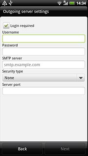 Press the field below SMTP server and key in the name or IP address of your email provider's outgoing server.