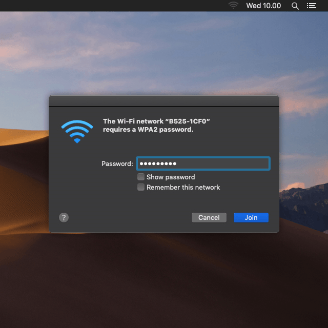 I can't establish a wireless connection to my Huawei B525 Mac OS Mojave