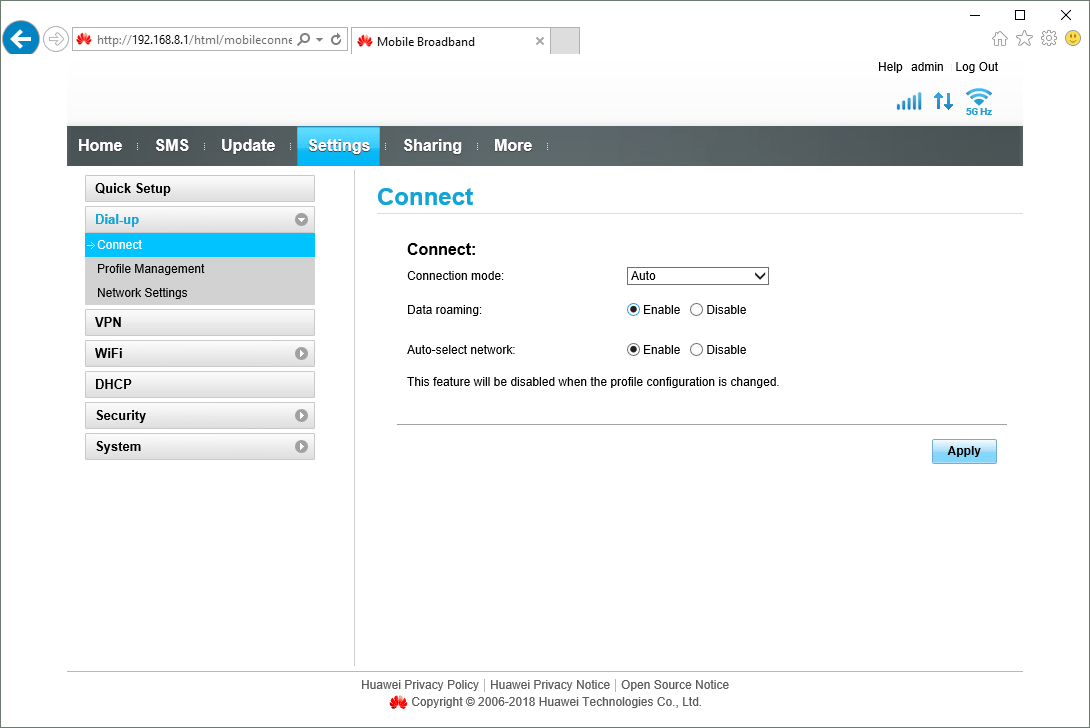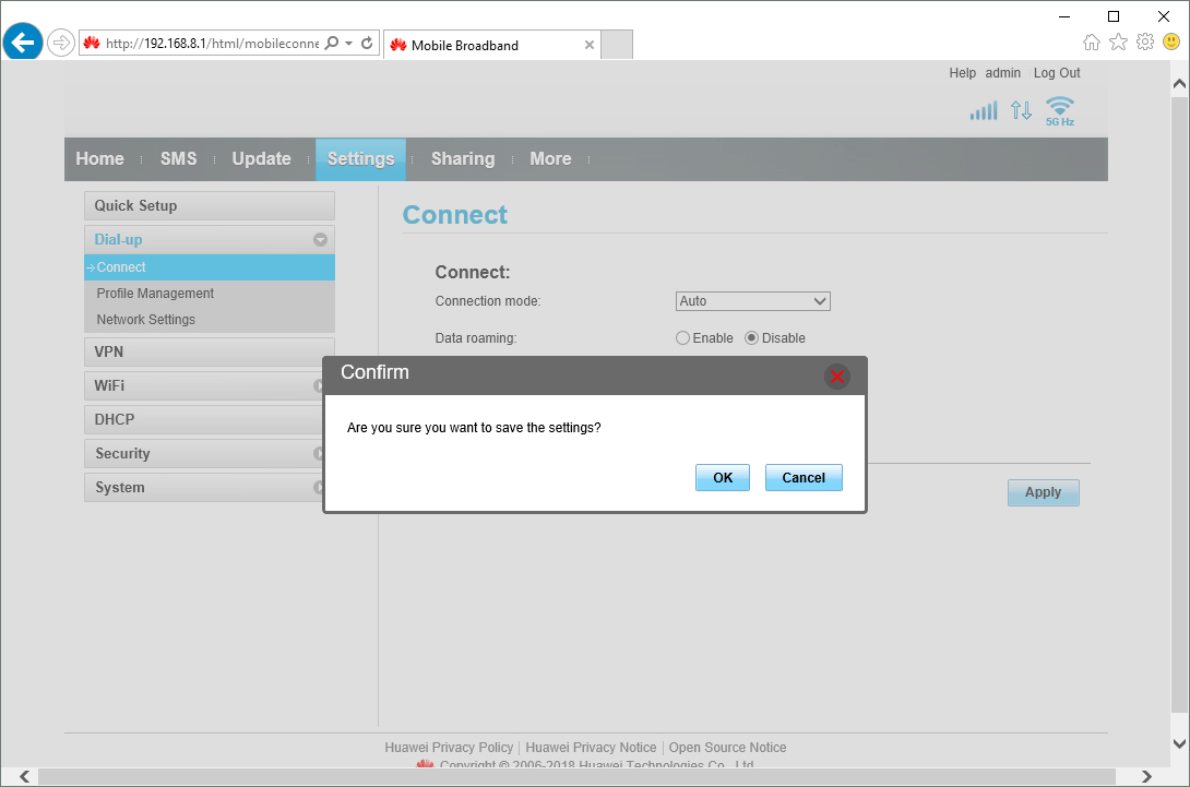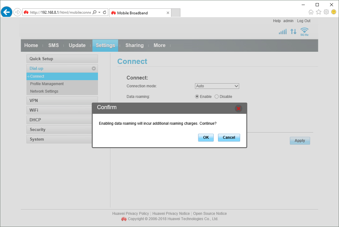 For your router to establish a connection to the internet when abroad, data roaming needs to be turned on.