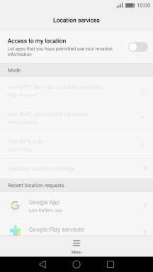 Press the indicator next to "Access to my location" to turn the function on or off.