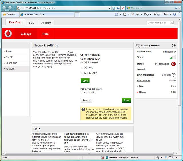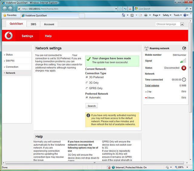 You can select which network modes your USB modem can use. This setting determines the data speeds you can achieve. If you have an active internet connection, it needs to be ended.