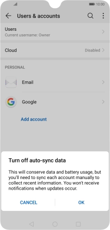 Turn automatic synchronisation of content on your Huawei Mate 20 Android 9.0 on or off