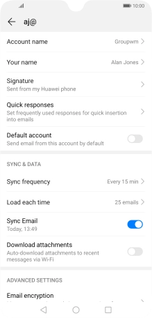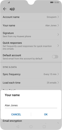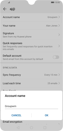 If this screen is displayed, you email account has been recognised and set up automatically. Follow the instructions on the screen to key in more information and finish setting up your phone.