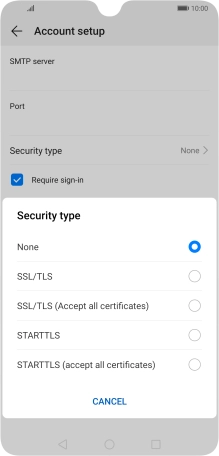 Press the field next to "Require sign-in" to turn the function on or off. Please note that if you're using Vodafone's outgoing server, turn off SMTP authentication and leave the username and password fields empty.