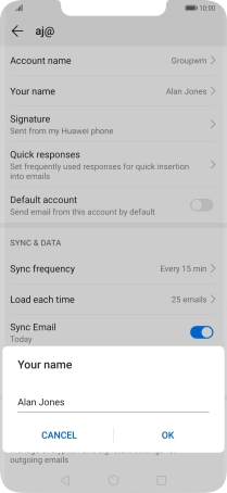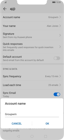 If this screen is displayed, you email account has been recognised and set up automatically. Follow the instructions on the screen to key in more information and finish setting up your phone.