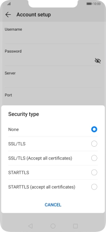 Press the field below "Server" and key in the name of your email provider's incoming server.
