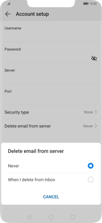 Press the field below "Server" and key in the name of your email provider's incoming server.