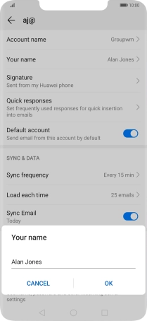 If this screen is displayed, you email account has been recognised and set up automatically. Follow the instructions on the screen to key in more information and finish setting up your phone.