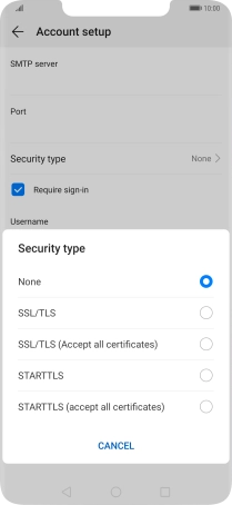 Press the field next to "Require sign-in" to turn the function on or off. Please note that if you're using Vodafone's outgoing server, turn off SMTP authentication and leave the username and password fields empty.