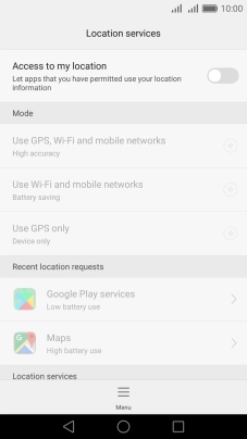 Press the indicator next to "Access to my location" to turn the function on or off.