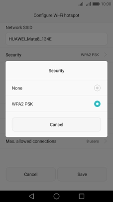 Press WPA2 PSK to password protect your Wi-Fi hotspot.