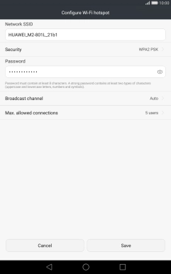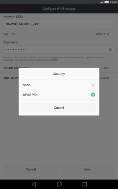 Press WPA2 PSK to password protect your Wi-Fi hotspot.