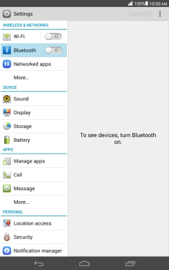 Press the required Bluetooth device and follow the instructions on the screen to pair the device with your tablet.