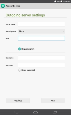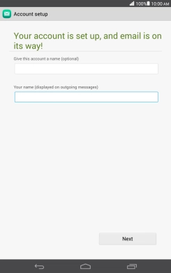 If this screen is displayed, your email account has been recognised and set up automatically. Follow the instructions on the screen to key in more information and finish setting up your tablet.