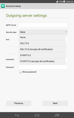 Press the field next to "SMTP server" and key in the name or IP address of your email provider's outgoing server. Please note that if you can't send email messages when using your email provider's outgoing server, key in smtp.vodafone.net.au (Vodafone's outgoing server).