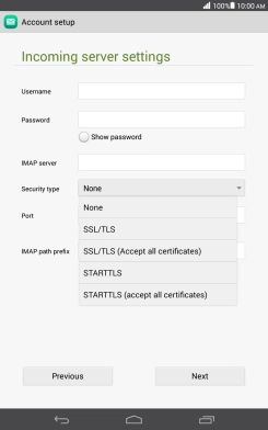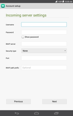 Press the field next to "IMAP server" and key in the name of your email provider's incoming server. Please note that if you can't send email messages when using your email provider's outgoing server, key in smtp.vodafone.net.au (Vodafone's outgoing server).
