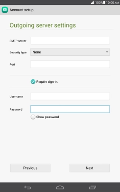 Press Require sign-in. to turn the function on or off. Please note that if you're using Vodafone's outgoing server, turn off SMTP authentication and leave the username and password fields empty.