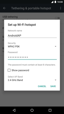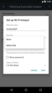 Press WPA2 PSK to password protect your Wi-Fi hotspot.