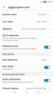 Press Notify me when email arrives to turn the function on or off.
