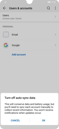 Turn automatic synchronisation of content on your Huawei P30 Android 9.0 on or off