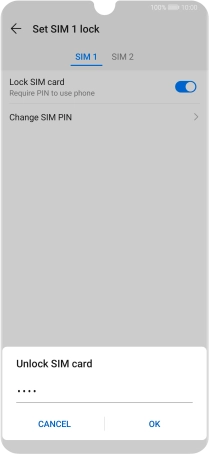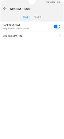 Press the indicator next to "Lock SIM card" to turn the function on or off.