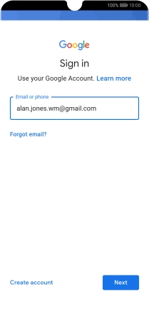 If you don't have a Google account, press Create account and follow the instructions on the screen to create an account.