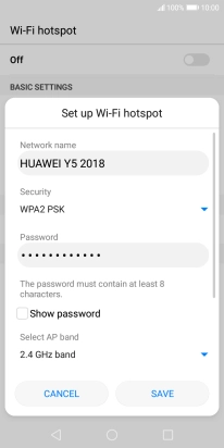 Press WPA2 PSK to password protect your Wi-Fi hotspot.